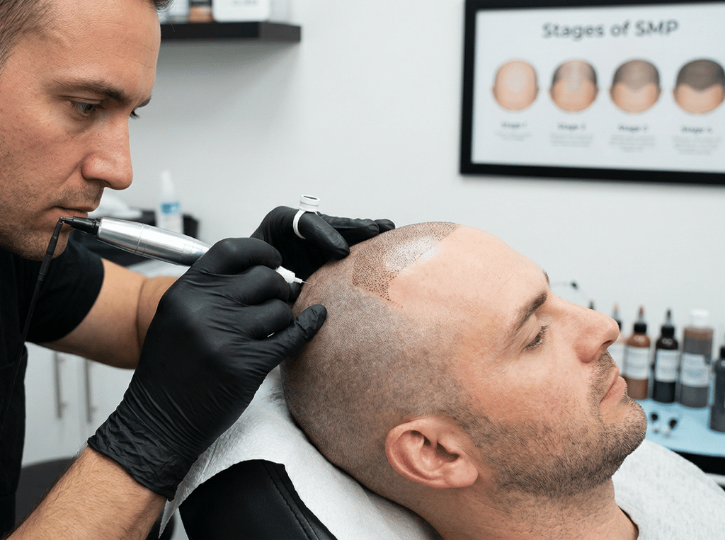 Non-Invasive & Safe: Unlike hair transplants, SMP requires no surgery, no stitches, and has a very short recovery time.
