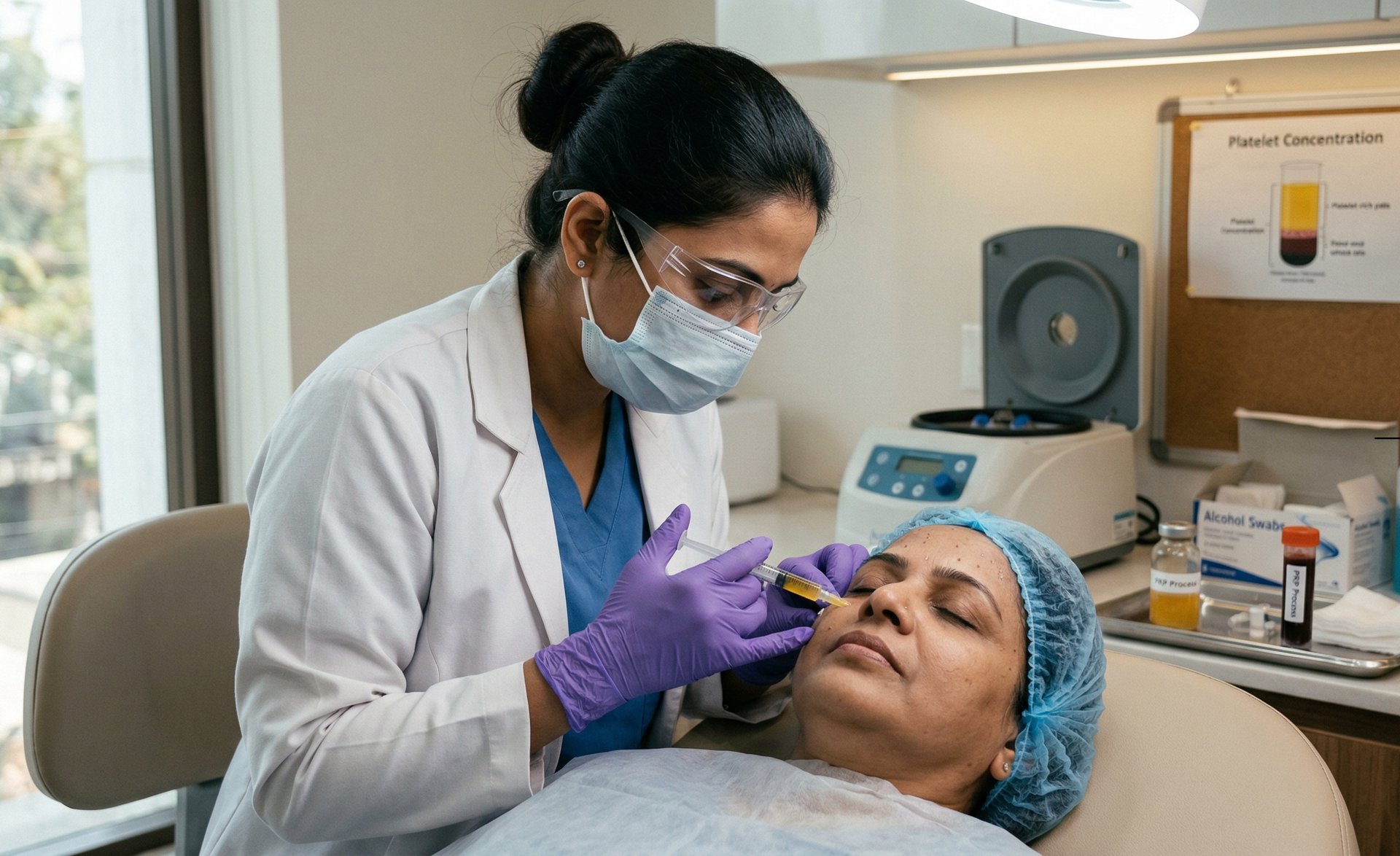 While PRP uses concentrated platelets to release growth factors over time, GFC is a more advanced, highly purified version where growth factors are extracted directly from the platelets beforehand. These "growth boosters" are then micro-injected into the scalp or face to trigger intense cellular repair and collagen production.