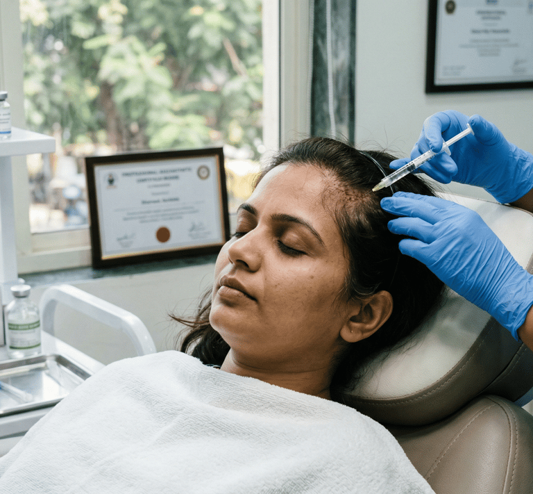 Hair Mesotherapy is a specialized, non-surgical treatment that involves micro-injecting a potent "nutrient cocktail" directly into the scalp’s middle layer (mesoderm). This customized blend typically includes vitamins, minerals, amino acids, co-enzymes, and DHT blockers. By bypassing the skin barrier, these essential nutrients reach the hair follicles instantly, boosting blood circulation and providing the fuel needed for hair repair and growth that topical oils or shampoos simply cannot provide.